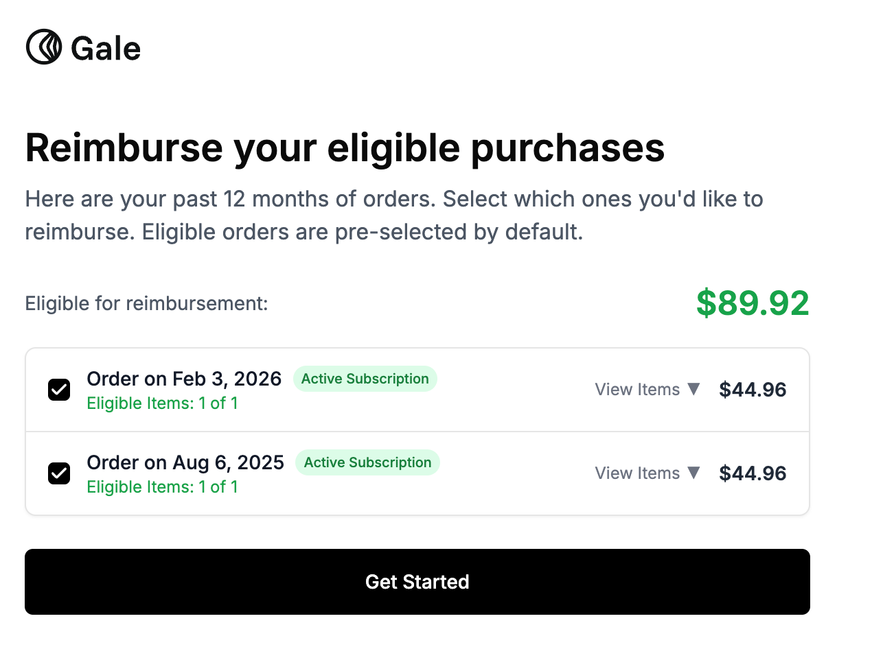 You can even be reimbursed for past orders within the last 12 months! Click the “get started” button to claim your reimbursements.