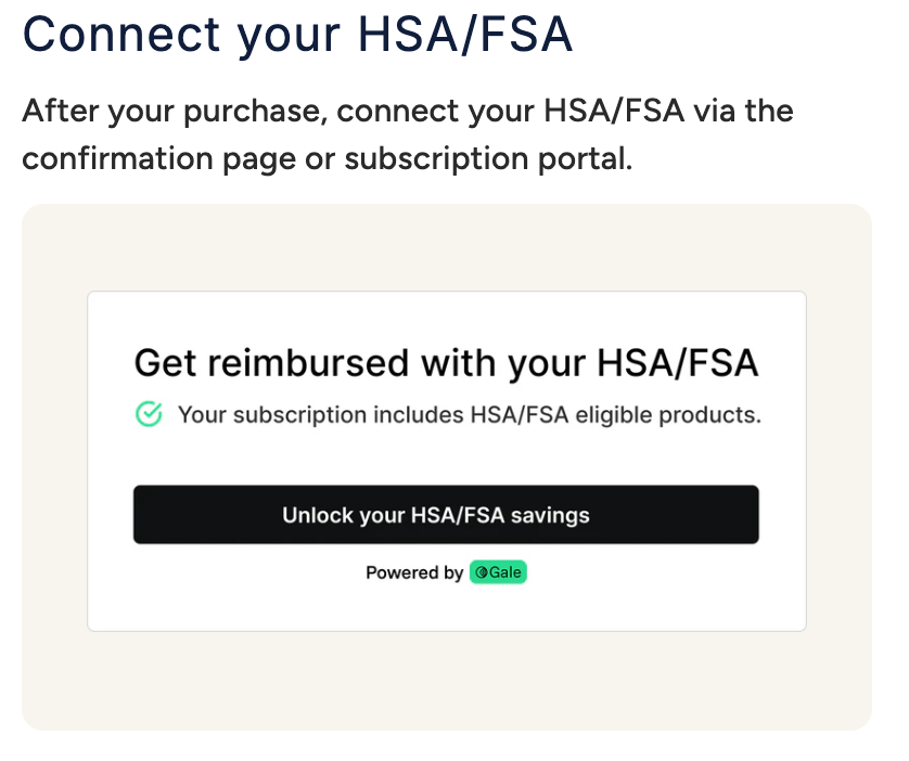 If you’re purchasing a subscription, you’ll use your credit card to make the payment at checkout and click the link in your order confirmation to connect your HSA/FSA card after for reimbursement of the eligible products. You can also find this link in your customer portal.